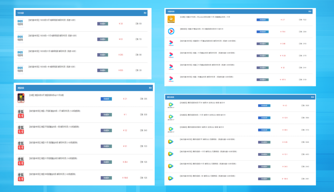 ● 项目三、各视频平台会员优惠充值