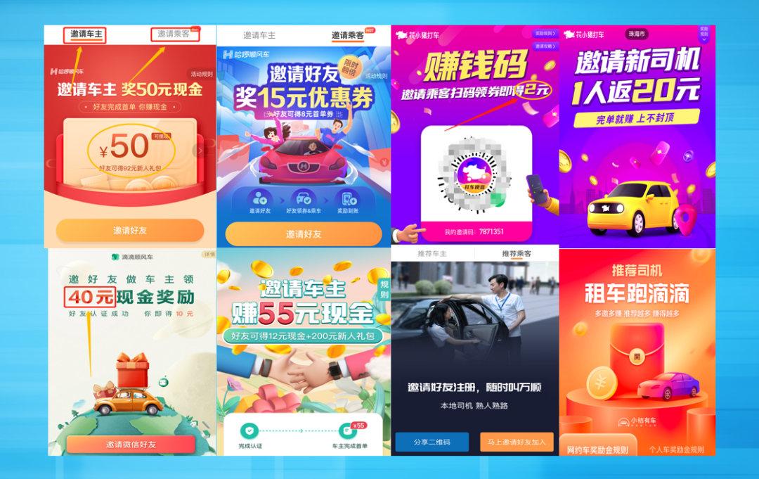 每个打车平台,都会有分享这个端口。有些折成打车券,有些给到可提现的佣金。
