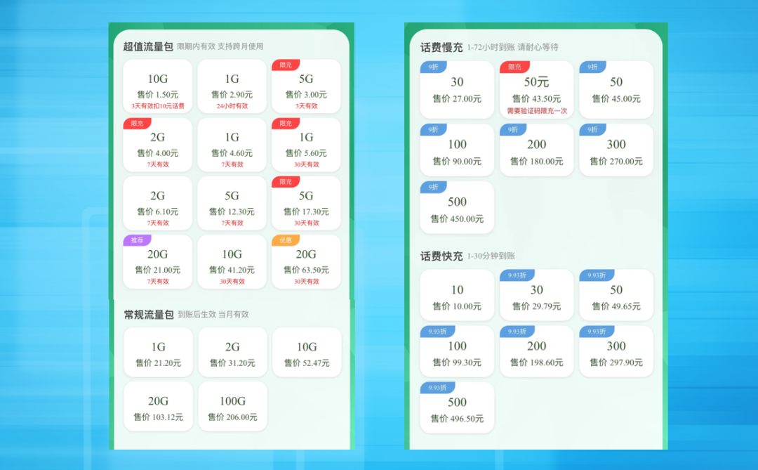 ● 项目一、话费慢充9.2折话费充值