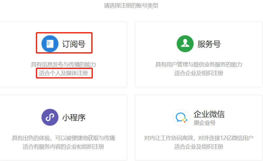 个人注册用来写文章/发视频,选择“订阅号”就可以了
