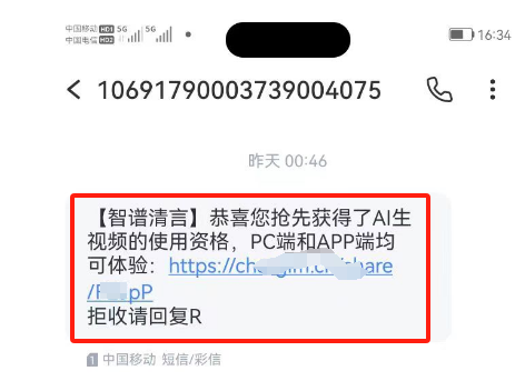 审核通过后会收到这样短信,就证明你可能创作视频了。