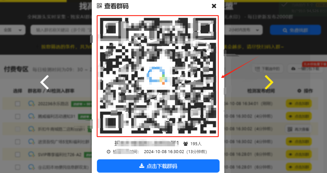 只要是查看过的群,这里就会显示再次查看。也就是说,一个群二维码,只要你查看过第一次,第二次就可以免费查看,不会再扣除积分。