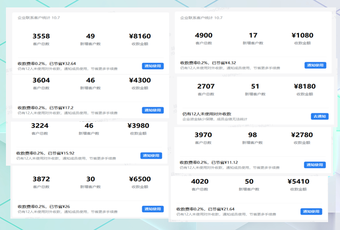而企业微信,单号正常一天可以添加200群以上没有问题,权重低的也能添加100个左右。另外就是主动打招呼,个人微信单号一天正常在30-50人,企业微信单号一天可以达到1000人。如果按10%通过频率计算,个人微信单每天只能通过3-5人,而企业微信按30-50秒的速率和时间间隔打招呼,单号一天也能通过20-50人很正常。