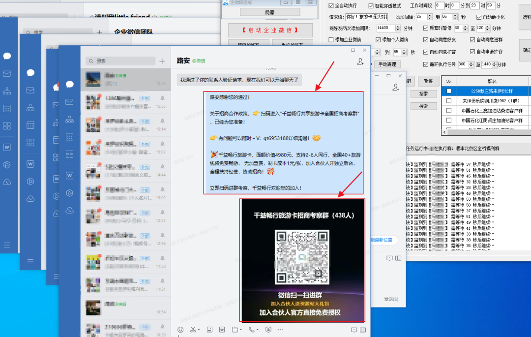 之前在我在“企微社群运营,1套系统,2个款工具,线上获客当天见效!”这篇内容里面也有详细分享过,不知道有多少朋友看过。里面其实就是使用了咱们的企微极速版、企业微信、群脉联盟,这三款工具就完成全过程。