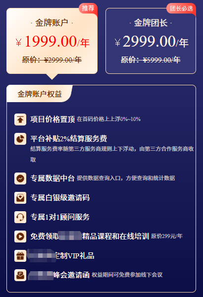 比如这个,就是靠会员收益,开通不同等级的会员,享受不同的利润。如果这个会员是你分享的,他开通了金牌账户,或是金牌团长,你都可以获得对应的利润。