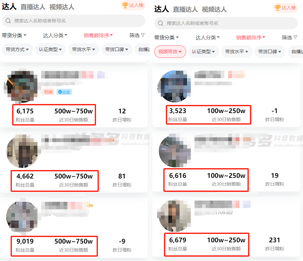 看到上面这些数据了吗,他们的粉丝都是不过万,但月销量都是几百万,按10%-30%的利润,他们的月收入也在大几十万。其中3523粉的这位博主,近30天带货100万-250万。什么概念,就是粉丝三千多,月变现就可以达到10万以上。