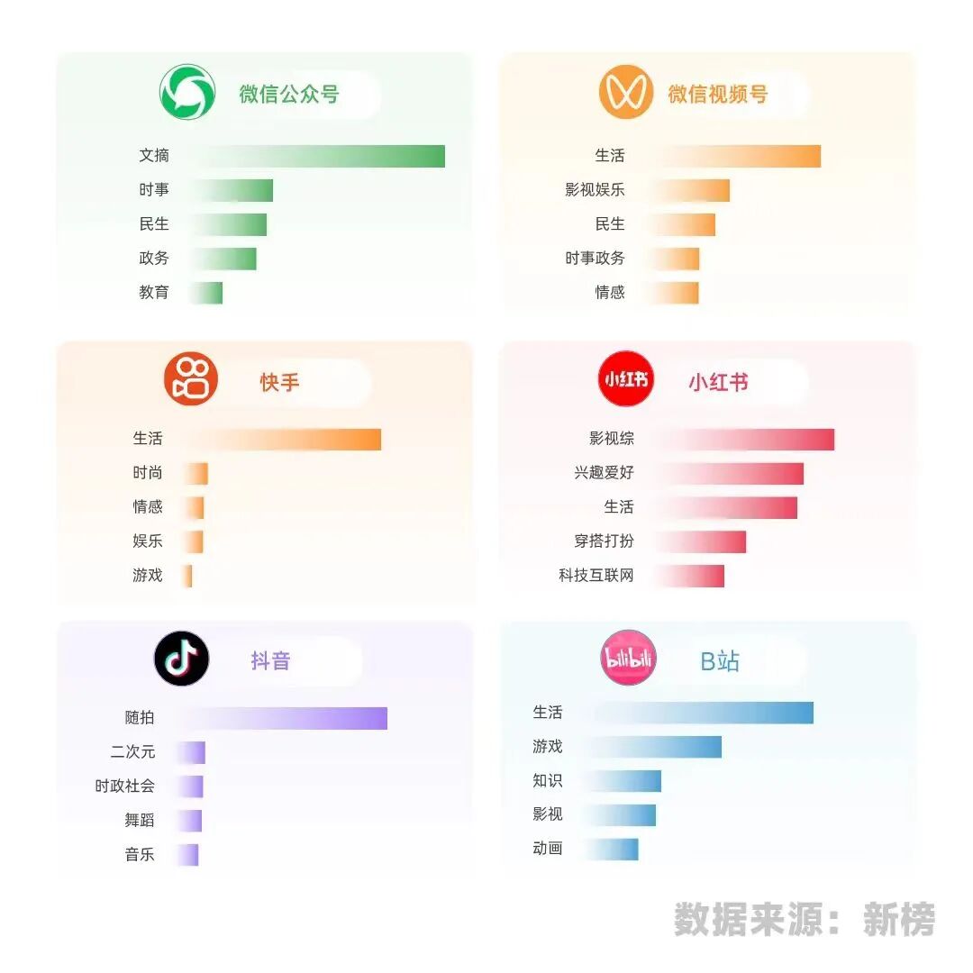 最近新榜发布的数据:微信、微博、抖音、快手、小红书、B站,这6个短视频主流平台,也是国内目前用户数据最大的6个平台。先看看下面这张图,每个平台的男女比例数据,还有年龄分布,你就明白为什么要把这6个平台放重点。