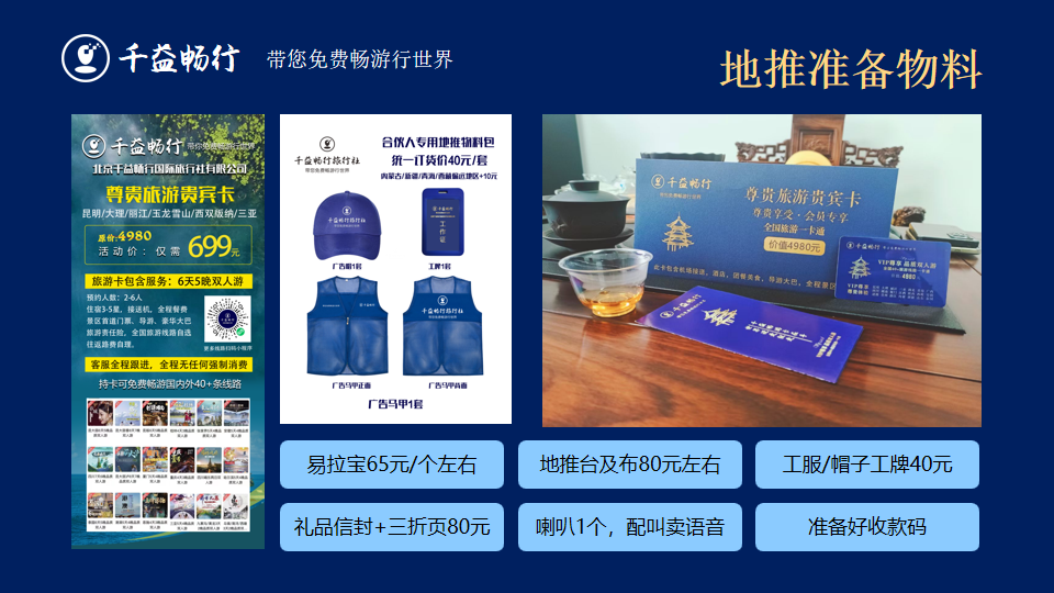 千益畅行共享旅游卡,单卡支持2-6人同行,凭此卡可免费享受星级酒店食宿、门票、导游、大巴、接送机、旅游责任险等,单卡预估市场价值4680元。目前有40多条网红精品线路可以任意选择出行,提前3-7天预约即可。游客自费来回大交通,无任何的强制消费。咱们共享旅游卡主要是散拼团,不是购物团。同时,咱们共享旅游卡还可以承接纯玩团和企业团游,能支持10000人以上的大型企业团游。另外,旅游卡可以作为商家营销赋能的礼品,对于实体商家可以使用低成本获取高价值的产品来营销,提升公司营业额。对于创业伙伴,不需要投入太大的成本即可创业,能降低试错成本。同时,不需要压太多的货,自用省钱,分享给朋友还能赚钱。1、批发卡,主要针对商家。这种是没有后台,没有后续佣金,价格为20-50元每张,根据数量而定。公司专业售后,直接对接咱们旅游卡源头的合伙人即可。公司总部免费协助做营销策划方案,免费定制素材,赋能商家营销。2、成为合作伙伴,主要针对创业群体。无加盟费、无系统费、无保证金、无培训费。前期制卡成本1元 /张,有500张、2000张、4000张、9000张4个档位。可以补差累积升级,累积拿卡数量超过9000张可享受更优惠的合作价格。不同的档位对应的佣金比例不一样,旅游佣金最高可达95%,招商佣金最高可达50%。选择从哪个等级开始,可根据自己的当下情况而定,具体政策直接在副业项目微商圈公众号后台跟旅游卡源头总部富哥对接。这种合作方式,有后续旅游佣金,可招商,可授权全国业务。公司有专业售后团队护航,专业运营团队带教,专业的运营素材库、案例库,运营更轻松。零售赚小钱:通过零售卖卡赚差价。合作伙伴成本1元/张,市面上正常售价199-699元每张。单日卖2-5张,日收益300-1000之间,甚至更高,这看个人的能力。批发赚大钱:批量卖卡赚差价。合作伙伴成本1元/张,根据商家需求的量,批发20-50元每张,单次批发50张以上,每天成交2个商家,月收益稳定3-5万。